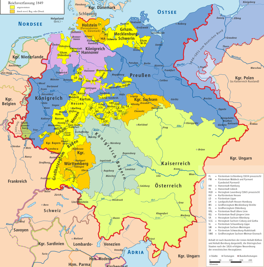 - Immerhin 28 von 39 deutschen Staaten nehmen die Verfassung an (vgl. Karte)